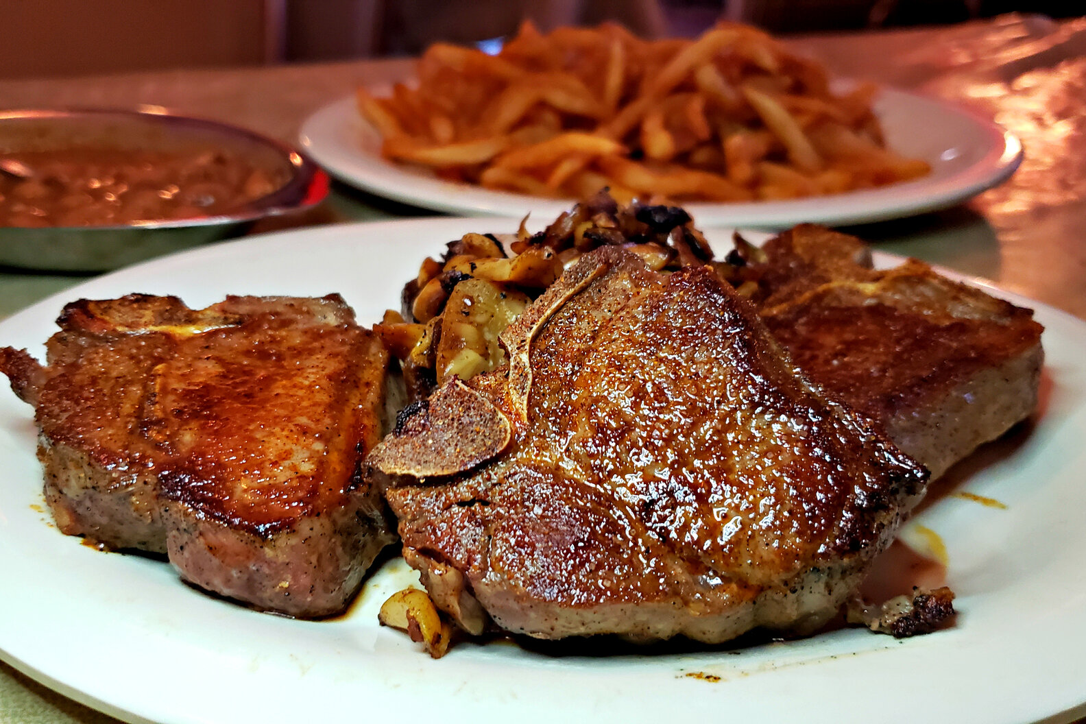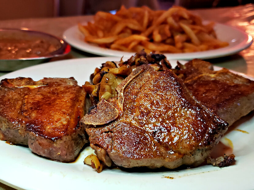 A meal at a Basque restaurant in this part of Nevada always comes with soup, salad, beans, and french fries for the table to share. The only thing you choose is a main entree: typically something high-protein like steak, chicken, pork, or lamb chops. A generous serving of sauteed garlic on top is a popular touch. Organ meats make regular appearances too, following a Basque practice of utilizing the full animal. Depending on the restaurant, the meal may also include additional sides, stew, wine, and/or dessert. Most entrees are in the $20 to $40 range (with prices creeping a bit higher for higher-end steaks), making this a better food value than any Las Vegas buffet.
