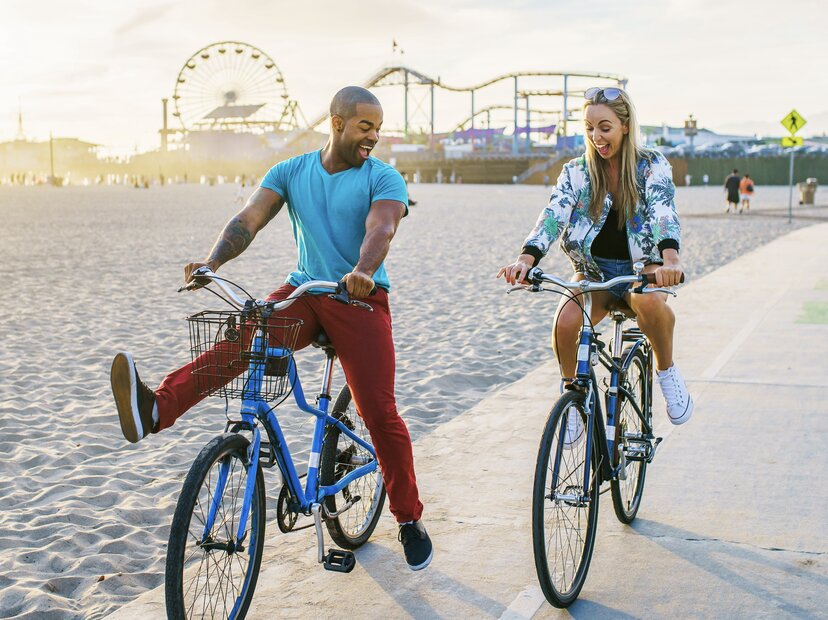 Maybe a hike sounds a little dusty and hot, the kind of thing better suited to a hangout than a date; then how about some breezier exercise? A bike ride along The Strand, also known as the Marvin Braude Bike Trail, can take you from the Palisades all the way down the coast to Torrance, a mostly flat and crisp cruise with plenty of places to pull over and hang out, for some booch, some seafood, or sea life.