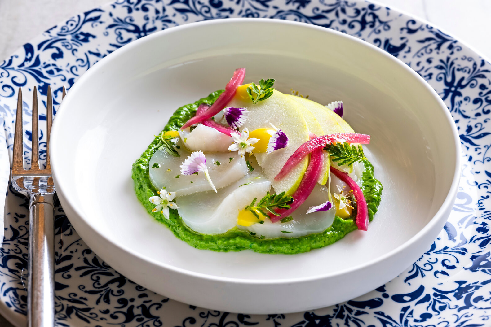 Taking inspiration from the historic Alhambra palace in Spain—this seasonally inspired menu mixes southern Spanish cuisine with Middle Eastern fare. Chef Zivkovic, along with executive chef Brian Bladfält Landry, present bold flavors across a variety of the region’s cultures. With distinct menus offered across brunch, lunch, and dinner, the dining concept focuses on four sections of small plated dishes—sea, land, garden and table—all meant to be enjoyed family style. Signature items include the 100-Layer Patatas Bravas with Garlic Aioli, Tuna Tartare with Pistachio, Quail Egg and Gem Lettuce, and a Smoked Eggplant Mousse over Grilled Dates.