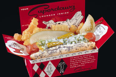 Leave it to a city built on meat-packing to produce the world’s perfect hot dog: An all-beef frankfurter plopped into a steamed poppy seed bun and “dragged through the garden,” as they say, collecting a hoard of yellow mustard, neon-green relish, chopped white onions, tomato wedges, spicy sport peppers, a dill pickle spear, and a shake of celery salt in its wake. Just as important as what’s on it is what’s not on it: ketchup. Get yours at a plethora of Chicagoland stands, quick-serve outposts, and even sit-down restaurants, each spot more colorful and charming than the last. Standouts include Fatso’s Last Stand, Superdawg Drive-in, Wolfy’s, Gene & Jude’s, Dog Haus Biergarten, Lulu’s, Jimmy’s Red Hots, The Duck Inn, Scatchell’s Beef, Portillo’s, Byron’s, and the Wiener Circle, where the staff famously serves their char dogs with a side of expletive-streaked sass.