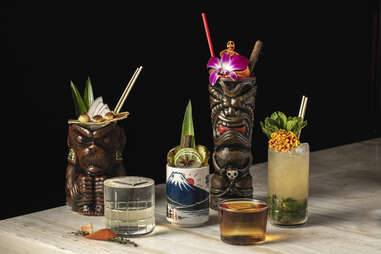 This subterranean tropical temple has been tunneling into our hearts since 2013. And a decade later, Three Dots has established itself as one of the premiere cocktail lounges in all of Chicago—and beyond. The recipe is escapism. It could be the dead of winter, or the heat of summer, but it’s perennially a perfect paradise inside. Under the tipsy tutelage of beverage director Kevin Beary, the menu reads like a tropical travel itinerary filled with Polynesian classics and boozy novelties, all served up in dazzling, whimsical vessels that range from barrels and skulls to an octopus. Rum is king, and while you really can’t go wrong with any of the tipples, some standout staples include the namesake Three Dots and a Dash (a blend of aged Martinique rhum agricole, aged guyana rum, lime, orange, falernum, and allspice), the Trader Vic Mai Tai (aged Barbados rum, aged Fijian rum, overproof Jamaican rum, Curacao, lime, almond orgeat), and seasonal specials like Coffee Grog, a caffeinated punch of rums, Creole shrub, espresso, coconut, and cinnamon.