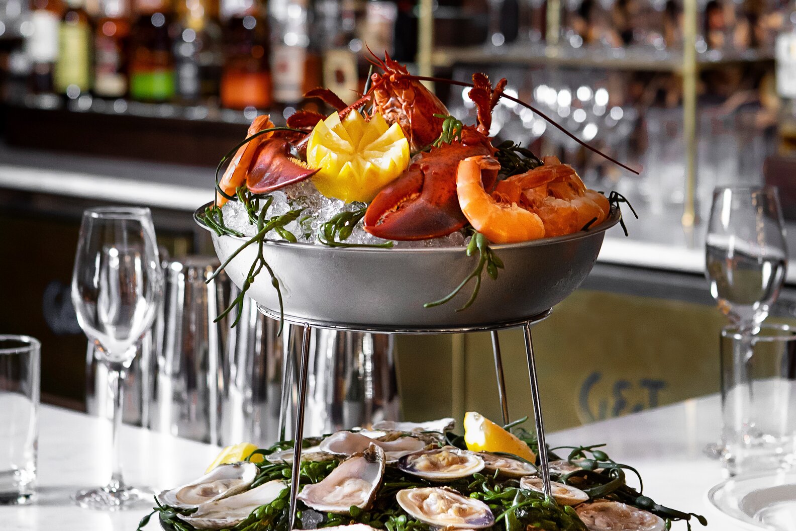 With its origins dating back to 1879, Gage & Tollner in Downtown Brooklyn is a part of NYC’s storied restaurant history. Making its debut last spring, veteran restaurateurs Sohui Kim and Ben Schneider (the wife-and-husband duo behind The Good Fork Pub and Insa), and St. John Frizell (Fort Defiance) are behind the legendary oyster and chop house’s revival. Among steaks, classic sides like Creamed Spinach, and desserts by pastry chef Caroline Schiff, the G&T Chilled Seafood Platter Royale is a menu standout. Containing a whole Maine lobster, fluke crudo, dozens of oysters, clams, and shrimp cocktail, this seafood tower is certainly a picture magnet and can be followed by a few cocktails at the nautical-themed bar upstairs, Sunken Harbor Club.