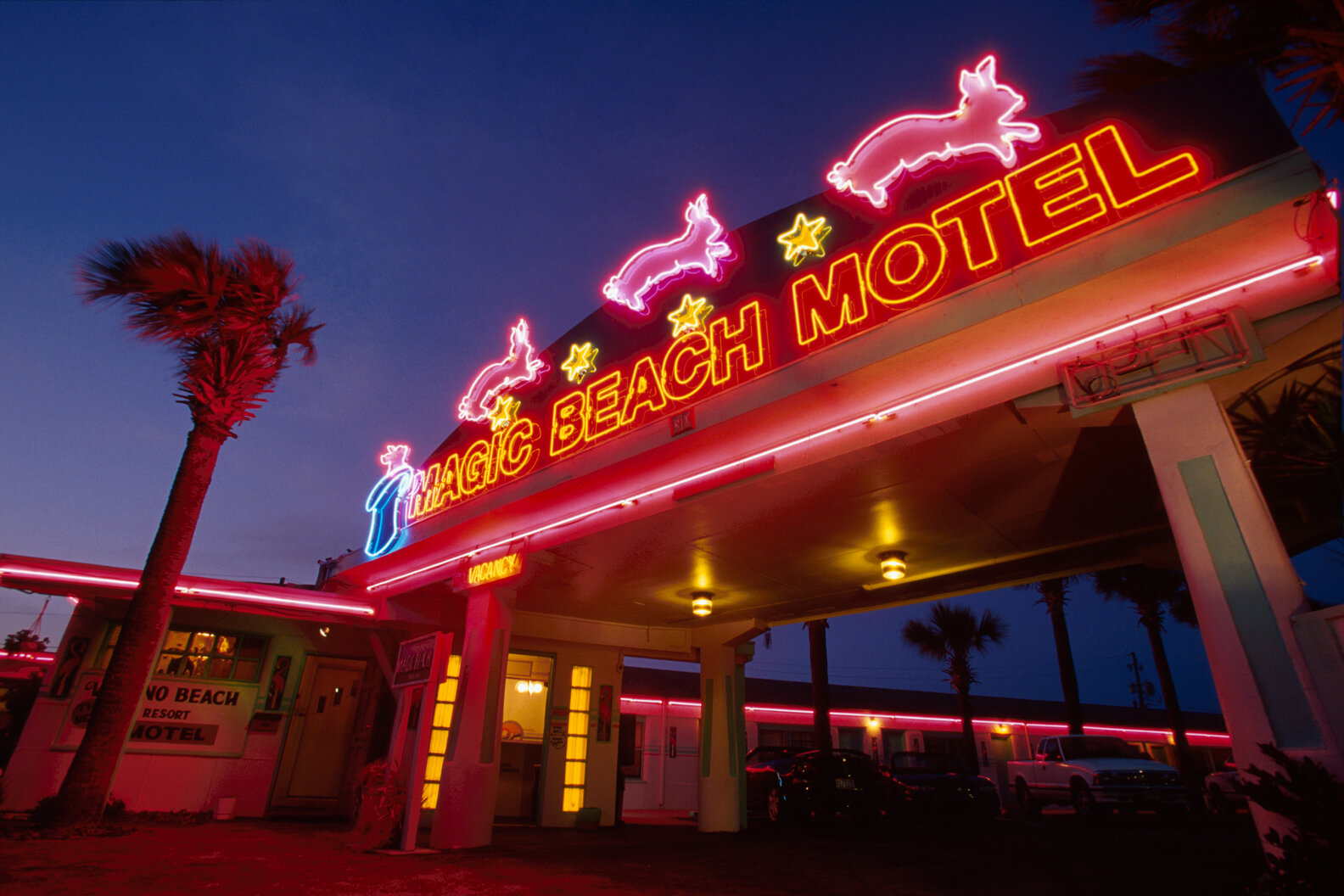 Motels, meanwhile, aren't incapable of flipping the script. "At first, when we were traveling, we tended to find motels not super accommodating. Hotels were nicer," Margaret Bienert, who co-runs the popular Instagram account A Pretty Cool Hotel Tour with her husband, Corey Bienert, said. Together, the pair explore hidden-gem-themed hotels and motels, which they also collected in the book Hotel Kitsch.