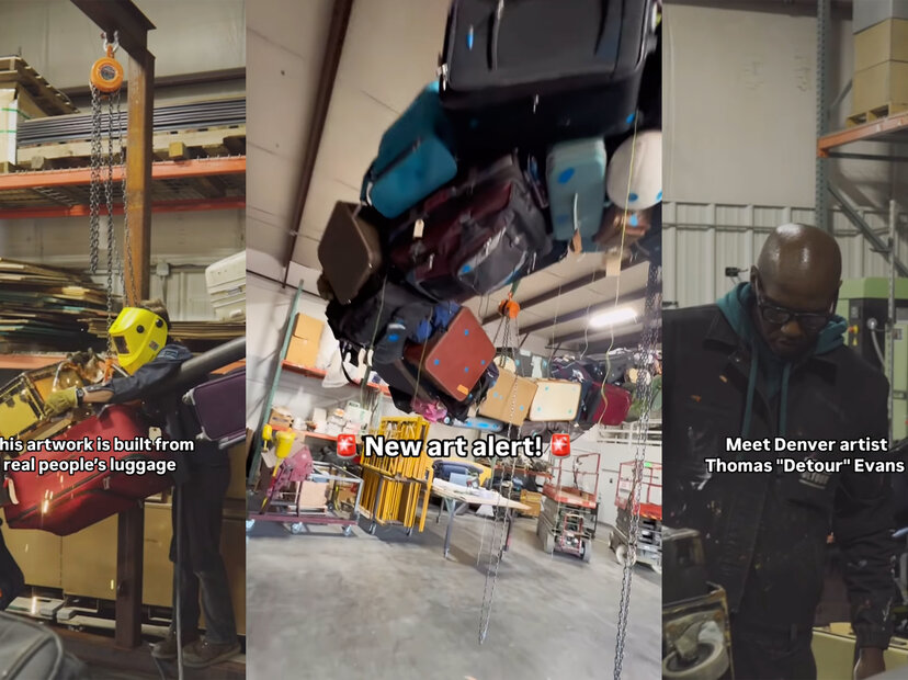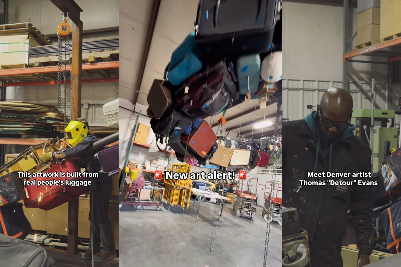 In this case, that includes some very cool art: Thomas “Detour” Evans, a Denver-based muralist and studio artist, has been tapped to make a large sculptural piece for the airport. His medium? Luggage. He offered up a sneak peek of his work on r/Denver, to the celebration of many locals, airport enthusiasts, and public art fans.