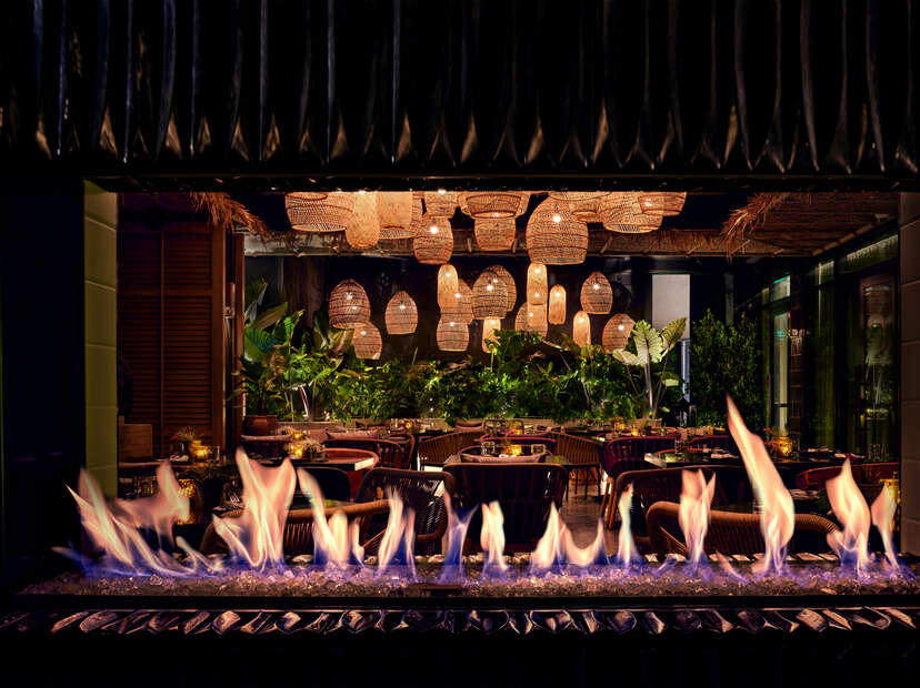 Just opened in December 2021, think of tommie as the Thompson’s relaxed, minimalist brother, offering a casual boutique experience across 212 rooms and seven suites, with rooms as low as $150 per night. The lobby features a self check-in station and a casual bar where you’ll catch guests mixing, mingling, and working during the day. Chef Wes Avila (Guerrilla Tacos, Angry Egret Dinette) serves as executive chef of the hotel’s signature KA’TEEN restaurant, a Tulum-inspired garden space with overflowing palms, string lights, wood accents, and fire dancers who shimmy by tables after dark. The menu honors Yucatan’s rich culinary history with dishes like lamb neck barbacoa, a nopalito salad, and scallop ceviche tostada, plus a cocktail list that leans heavy on agave spirits. On the rooftop is Desert 5 Spot, a quirky Palm Springs- and ‘70s-inspired lounge with a pool, mechanical bull, games, and jewel-toned vintage furniture. An in-house honkytonk band provides the late-night soundtrack.