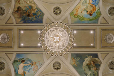 The Silver Corridor that leads into the Grand Ballroom was inspired by the Hall of Mirrors at Versailles and features gorgeous murals, mirrors, and metalwork that have been painstakingly returned to their original glory. In fact, the murals were originally commissioned for the first Waldorf Astoria and painted in 1897 by American impressionist artist Edward Emerson Simmons. Besides the clock, they’re one of the few elements that were on display at the hotel’s original location.