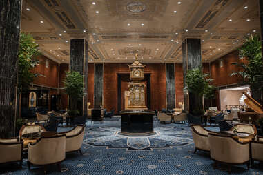 If you don’t want to drop an eye-popping $1,500 for an overnight stay, there are three food and beverage options where you can experience the Waldorf’s grandeur. At Peacock Alley, sip on creative cocktails from Jeff Bell, the esteemed mixologist behind the East Village speakeasy Please Don’t Tell (PDT). Several were created for the hotel, including the Waldorf (a spin on a Manhattan, with rye, sweet vermouth, absinthe, and Angostura bitters) and the $75 Reserve Rob Roy (made with Yamazaki Distiller's Edition Whiskey, Cocchi Vermouth di Torino, La Venaria Reale Riserva, and Benedictine).