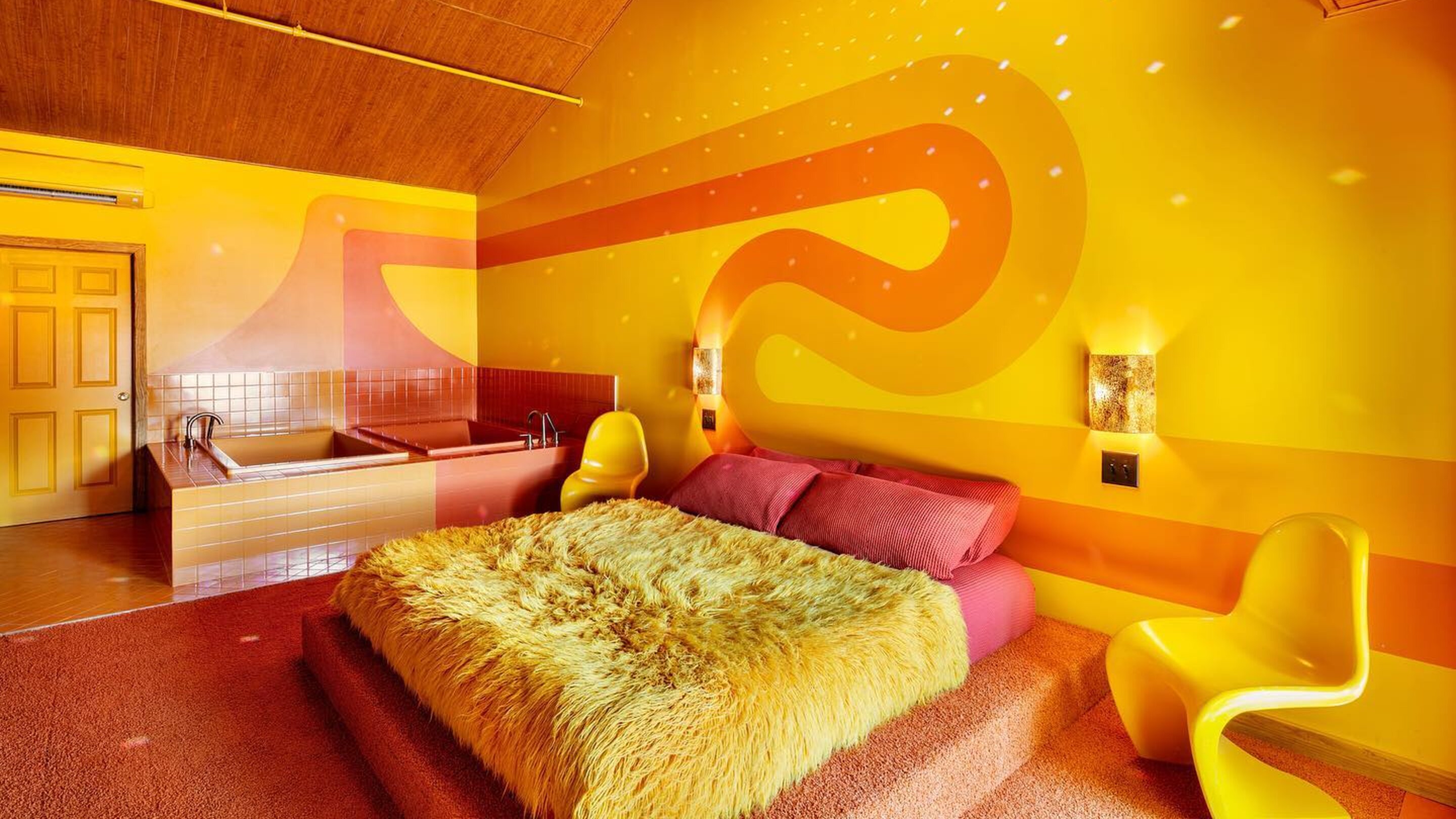 There is perhaps no place on earth that’ll make you want to buy a pair of bell-bottoms and bring back the phrase “groovy” more than Nashville’s Dive Motel & Swim Club, where the essence of disco essentially oozes from every floorboard. They’ve got 70s mod wallpaper. They’ve got an airy public pool and a wood-paneled bar complete with checkerboard tile and a Malm fireplace. Each uniquely-decorated room comes with a “Party Switch,” which causes a disco ball to spin to the tune of four specially-curated music channels. The whole place kind of feels like if the Bee Gees’ "Stayin' Alive" manifested itself into a hotel.
