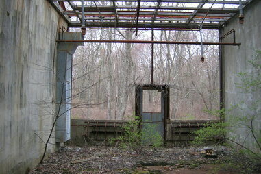 The Kristoff family's 600-acre farm cranked out dairy products, corn, apples, and pumpkins throughout the 1950s, which went to feed the surrounding population and their prized pigs. Kristoff pigs were apparently so coveted by pork distributors that, at one point, there were more pigs in the town of Sterling than humans. Sadly, the farm fell into disrepair, but many of its structures still stand. One such spot, commonly referred to as The Temple of Doom, may have been a loading dock, but the mammoth stacked stone foundation—covered in vines—is giving Indiana Jones vibes.