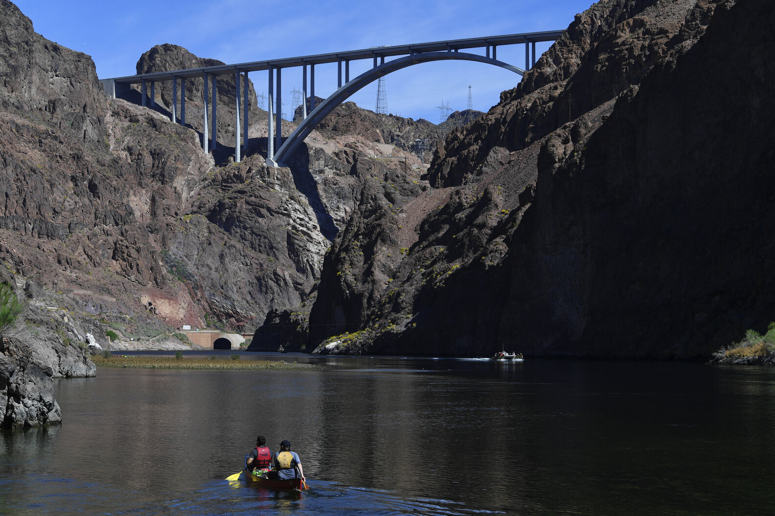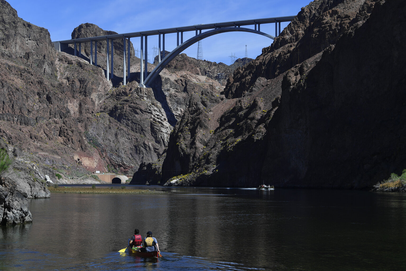 You can further appreciate the serenity of the Colorado River south of the Hoover Dam. Tour companies like Blazin' Paddles and River Dogz lead kayaking expeditions through the Black Canyon cliffs with stops at Emerald Cave (a cove where water illuminates in a unique way when hit by the sun), the Gold Strike Hot Springs, and Willow Beach. If you'd rather stay dry, Lake Mead Mohave Adventures has a Hoover Dam Rafting Tour with special security clearance to get an up-close look at the dam from the river. The "raft" is a comfortable motorized vehicle with plenty of seats and legroom, allowing you to focus on the scenery and snap photos.