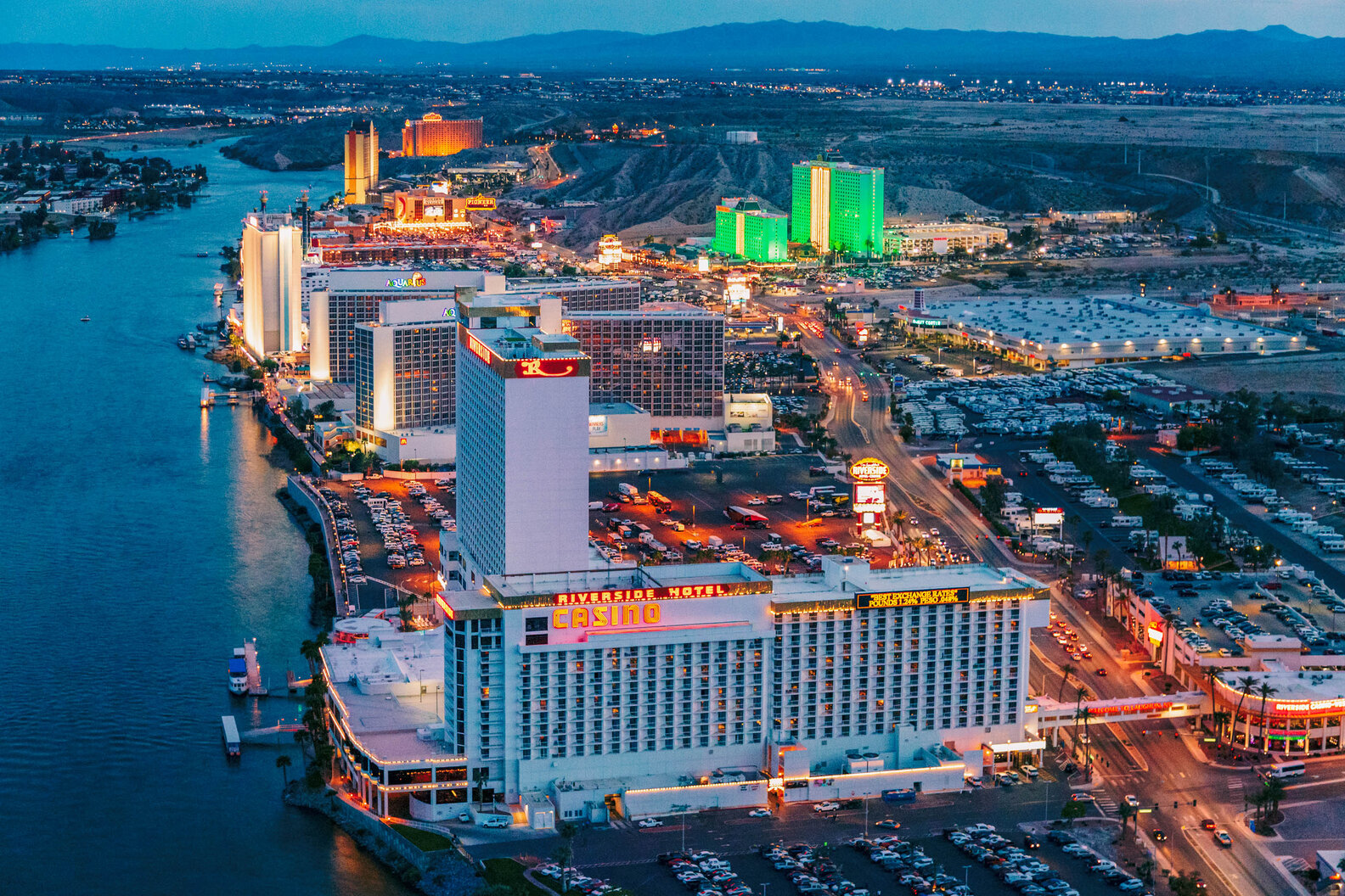 The New Pioneer has a rugged frontier theme and River Rick, a double of Vegas Vic, the iconic neon smoking cowboy in Downtown Vegas. It has its own small beach. So does Harrah's, which is at the south end of the casino strip, at a slight bend in the river, which makes it feel more secluded. The Aquarius is the largest resort with 1,900 rooms and the only smoke-free race and sportsbook in town. The buffet was recently renovated into a bingo room overlooking the river. And really, those views never get old, whether eating, gambling or doing anything else in Laughlin.