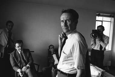 Likely the very first road-trip movie, It Happened One Night is the ultimate opposites-attract romantic comedy. Even if you haven't watched this Frank Capra classic, you've definitely seen its most famous scene: Claudette Colbert hitchhiking by lifting her skirt to a scandalous mid-thigh after Clark Gable gives up on waving his thumb at every passing Plymouth. The story follows a wealthy socialite (Colbert) who escapes her overprotective daddy and hops a Greyhound bus to New York to reunite with her new husband (a gold digger Daddy doesn't approve of). On the bus she meets a down-on-his-luck newspaper reporter (Gable) who agrees to help her get to the city if she gives him the scoop on the story. Hijinks ensure—she misses the bus! their bags are stolen! they have to share a hotel room!—and, spoiler alert, they fall in love. The movie swept at the Oscars, winning all five major categories, and 91 years later, it's just as wonderful. –Ellen Carpenter, contributing editor, Thrillist